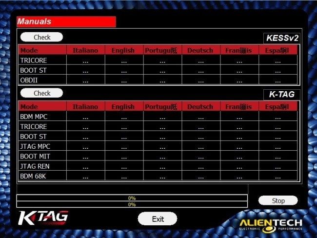 which group of protocols to enable and then start working. In this page you can find a complete list of the ECU currently supported by K-TAG.